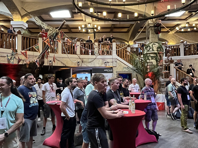 Nach der kleinen Retrospektive stand das Abendessen in der Piratenbucht des Heide Parks bereit. Bei Burger, Pommes Frites und Bier gingen die Gespräche munter weiter. Abgerundet wurde der Abend von einem gemeinsamen Ausklang im Saal "Captain Hook" und draußen auf der Terrasse bei kühlen, leckeren Drinks und Karaoke. So wurde noch bis spät in die Nacht getanzt, gelacht und gesungen.