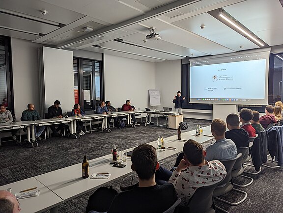 Rahmenprogramm des Abends ist überlicherweise ein Vortrag, der von reichlich Austausch bei Speis und Trank davor und danach geprägt ist.