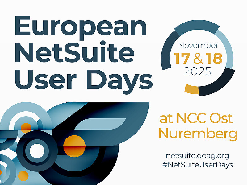 Die diesjährigen European NetSuite User Days erwarten euch – parallel zur DOAG Konferenz + Ausstellung – am 17. und 18. November 2025 im Nürnberg Convention Center Ost. Erstmals wird es in diesem Jahr einen Livestream der NetSuite-Konferenz und somit ein noch größeres Publikum geben.