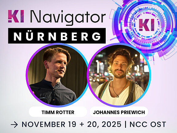 Im Rahmen ihrer Keynote "Mythen, Missverständnisse und echte Fortschritte: Generative KI im Realitätscheck" am 20. November um 10 Uhr im Raum Tokio nehmen Timm Rotter und Johannes Priewich von der Münchner KI-Beratung disruptive auf der KI Navigator 2025 in Nürnberg Generative KI unter die Lupe.
