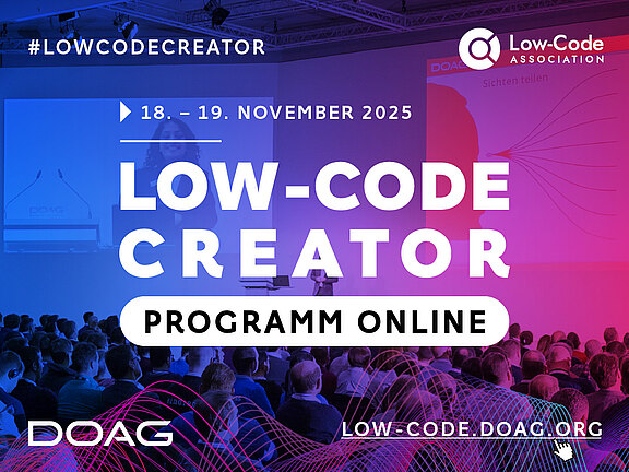Am 18. und 19. November 2025 öffnet das Nürnberg Convention Center Ost seine Türen für die erste Low-Code Creator – eine Fachkonferenz, die von der DOAG gemeinsam mit der Low-Code Association e.V. ausgerichtet wird.